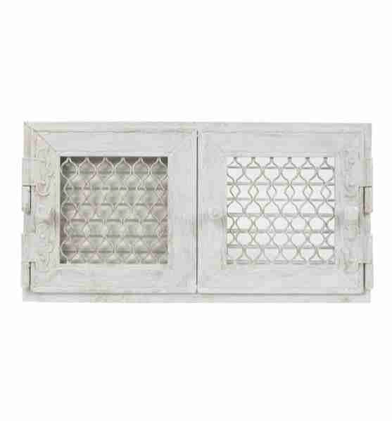 Grila de culoarea alba pentru evacuarea aerului cald din hota semineului cu dimensiunea de 17/35, dotata cu deschidere si jaluzea.