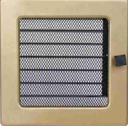 Model deosebit de grila dotat cu jaluzea, vopsita electrostatic in culoarea auriu, avand dimensiunea de 17/17 cm.