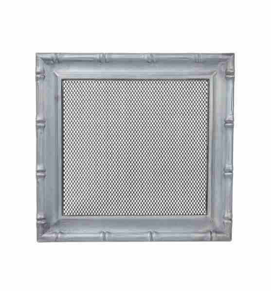 Grila de semineu cu aspect elegant, avand rama cu model si sita. Dimensiuni 17 / 17 cm.