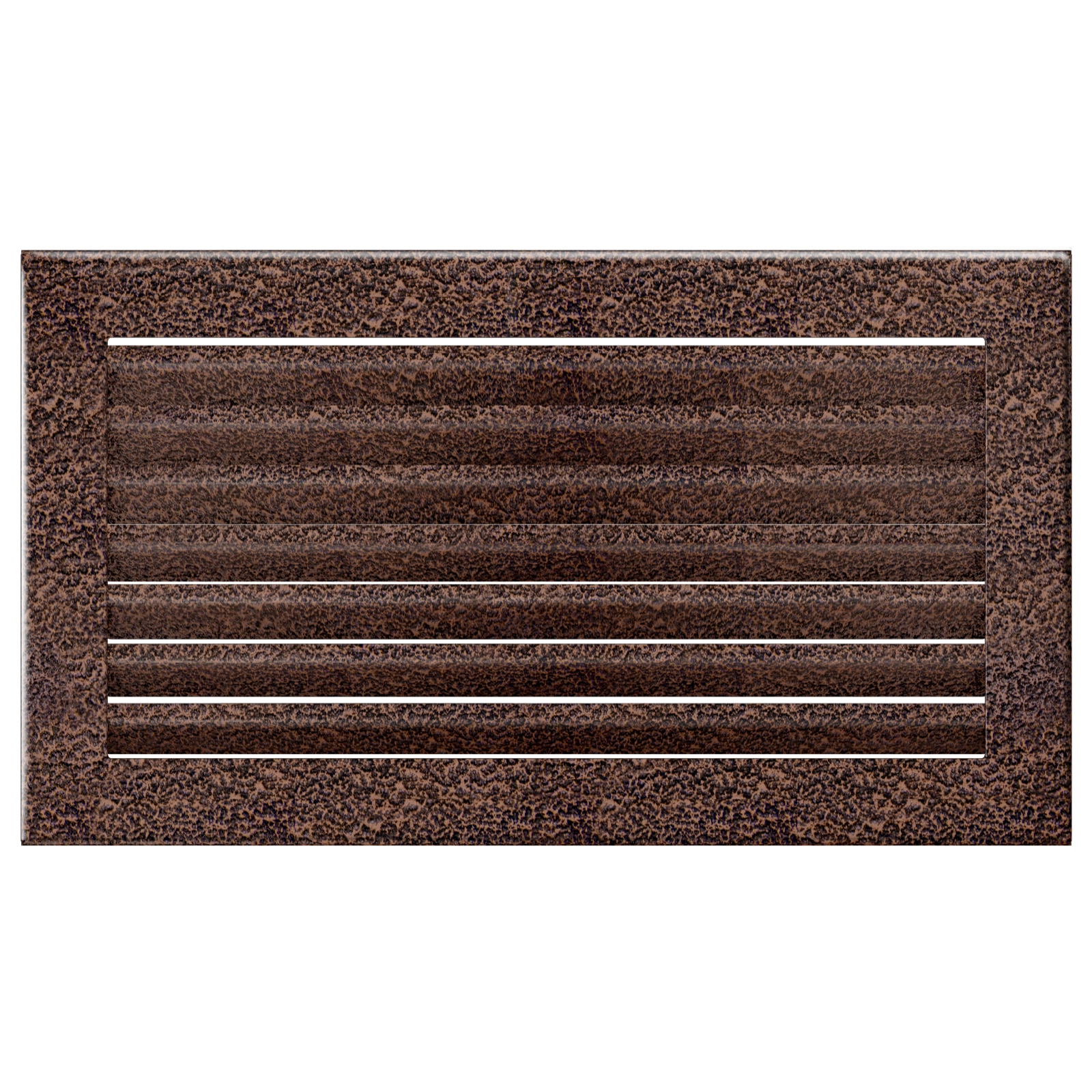 Grila metalica vopsita electrostatic in nuanta cuprului, avand dimensiunile de 17/30 cm, usor de integrat intr-un interior clasic.
