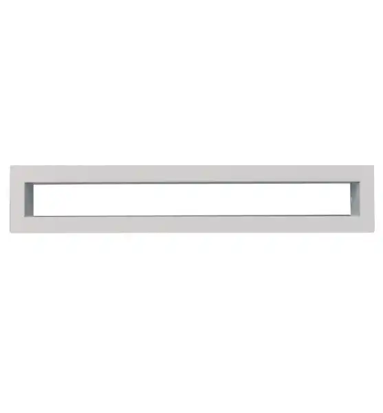 Grila metalica de aerisire de culoare alba, tip tunel. Are dimensiunile 6 x 40 cm si un design simplu si modern, fiind ideala pentru interioare contemporane.