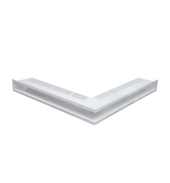 Grila luft colt de culoarea alba cu dimensiunea 9/56/56 cm. Se foloseste pentru evacuarea aerului cald din hota semineului.