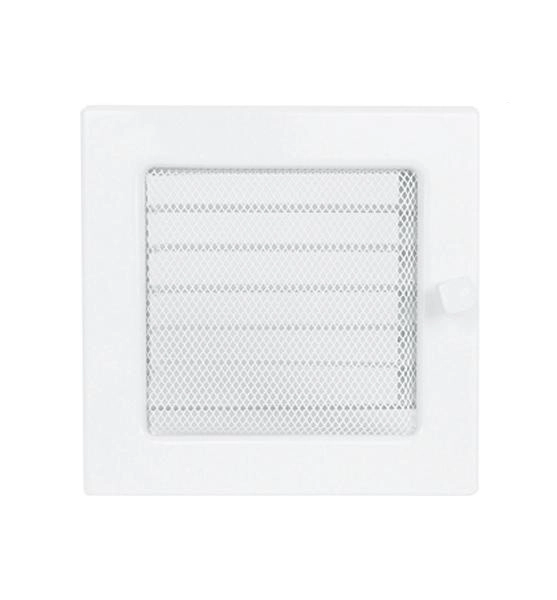 Grila alba cu jaluzea de dimensiunile 17 / 17 cm. Usor de integrat in orice stil de semineu: rustic, modern sau clasic.