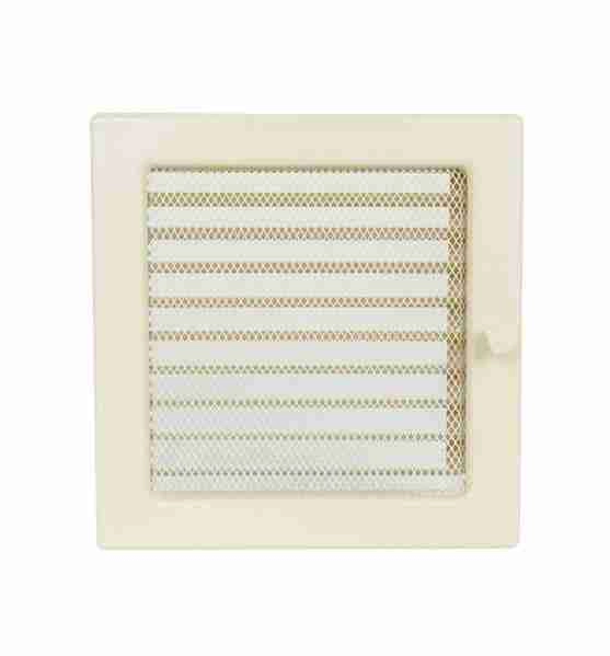 Grila de aer cald de culoarea crem prevazuta cu jaluzea, avand dimeniunea de 22/22 cm.