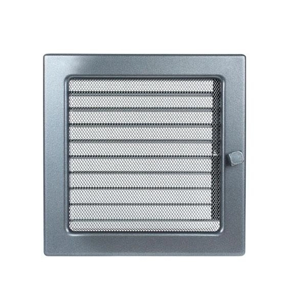 Grila de aer cald culoarea graphit, dotata cu jaluzea pentru controlul fluxului de aer si dimensiunile 22 / 22 cm.