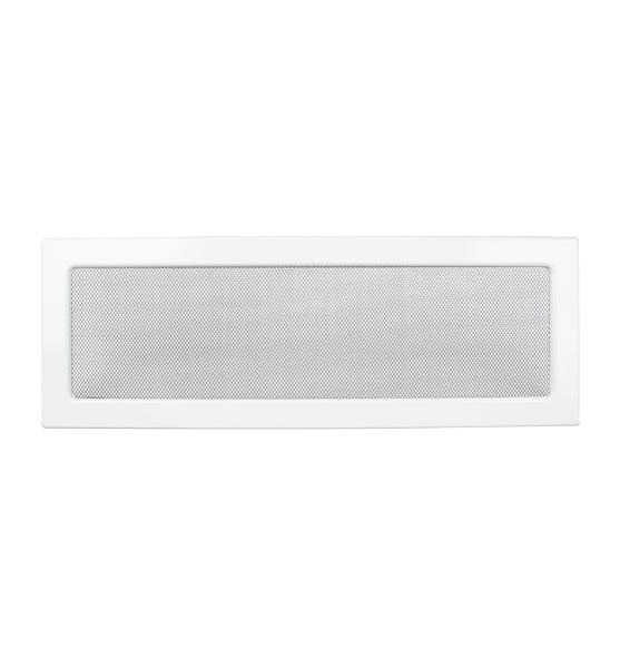 Grila metalica de evacuare a aerului cald din hota semineului, vopsita electrostatic in culoarea alba, avand dimensiunile 17 / 49 cm.