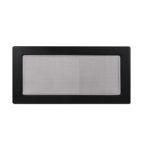 Grila de evacuare a aerului cald de la semineu, de culoare neagra. Design simplu si dimensiunile 17 / 37 cm.