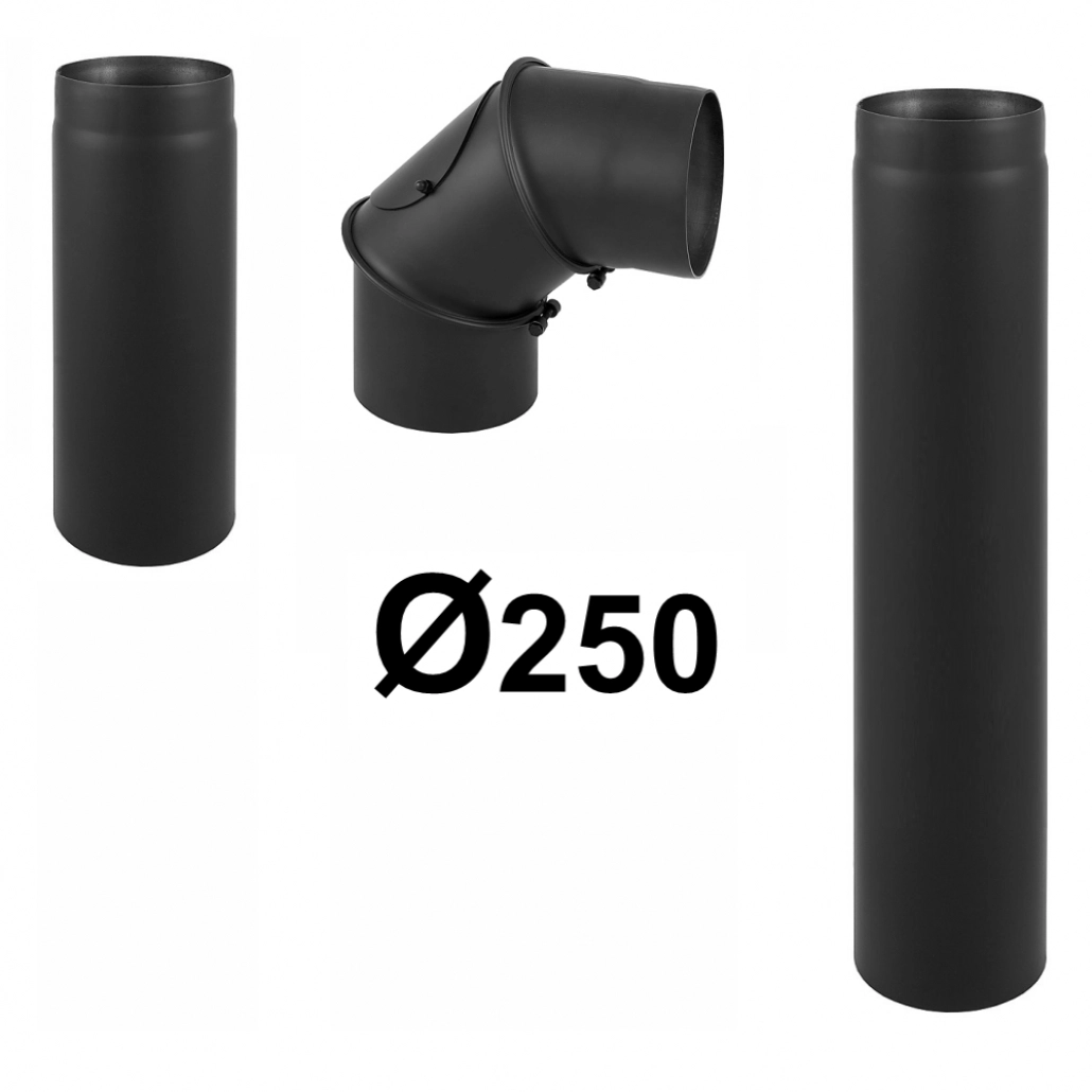 1 x Cot burlan reglabil fi 250 / 0-90 gr 1 x Burlan tabla de otel Fi 250 – 50cm 1 x Burlan tabla de otel fi 250 – 1m