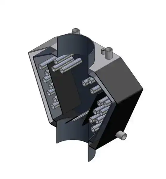 Recuperator cu tevi transversale pe traseul fumului si clapeta de sens. Este o sursa de caldura foarte economica, deoarece nu necesita folosirea combustibilului suplimentar, ci numai caldura excesiva a gazelor de evacuare care parasesc focarul.