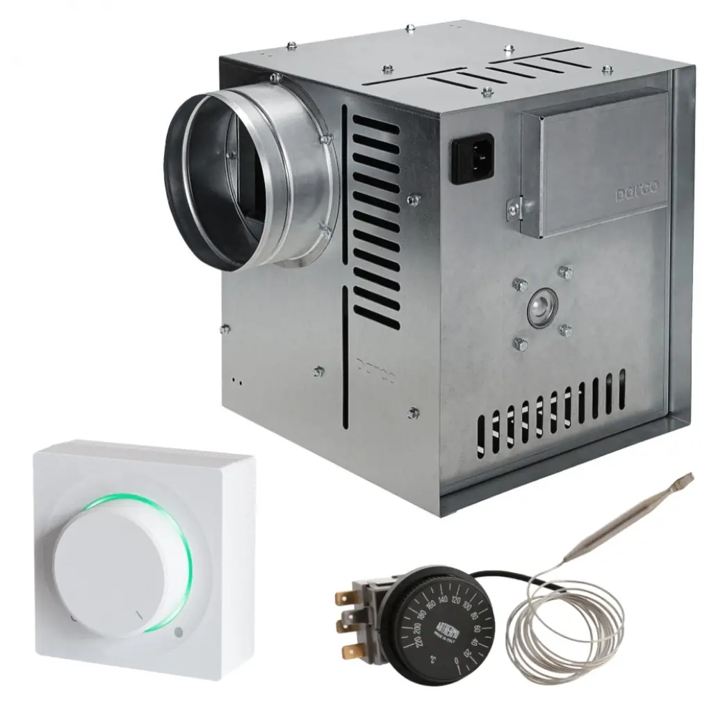 Ventilator / Turbina profesionala cu un consum redus de energie pentru distributia de aer de la semineu in mai multe incaperi pe tubulatura izolata. Cu acest ventilator veti obtine un echilibru al temperaturii in locuinta.
