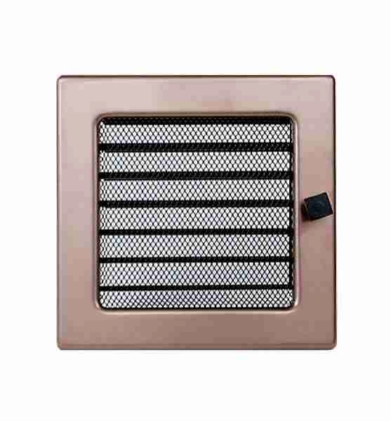 Grila Stejar cu jaluzea si aspect simplu, usor de integrat in decorul semineului. Are culoarea cuprului si dimensiunile de 17/17 cm.